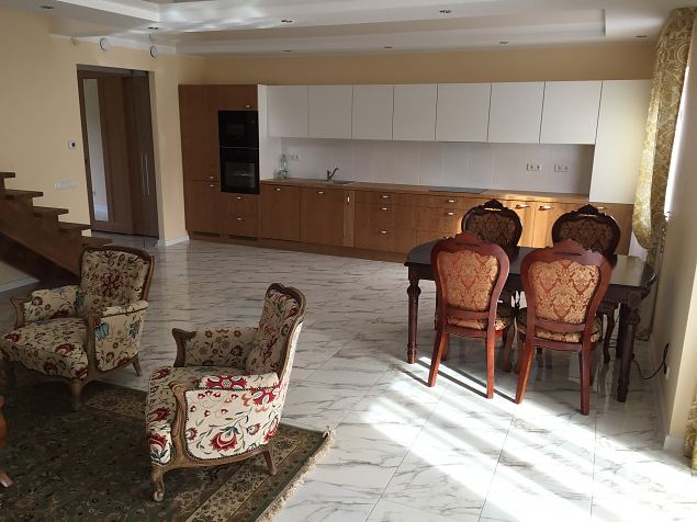 Tammepuidust siseuksed, parkett, valmis kujul saun, mullivanniga vannituba, kvaliteetse köögimööbliga köök, valgustid, kardinad.